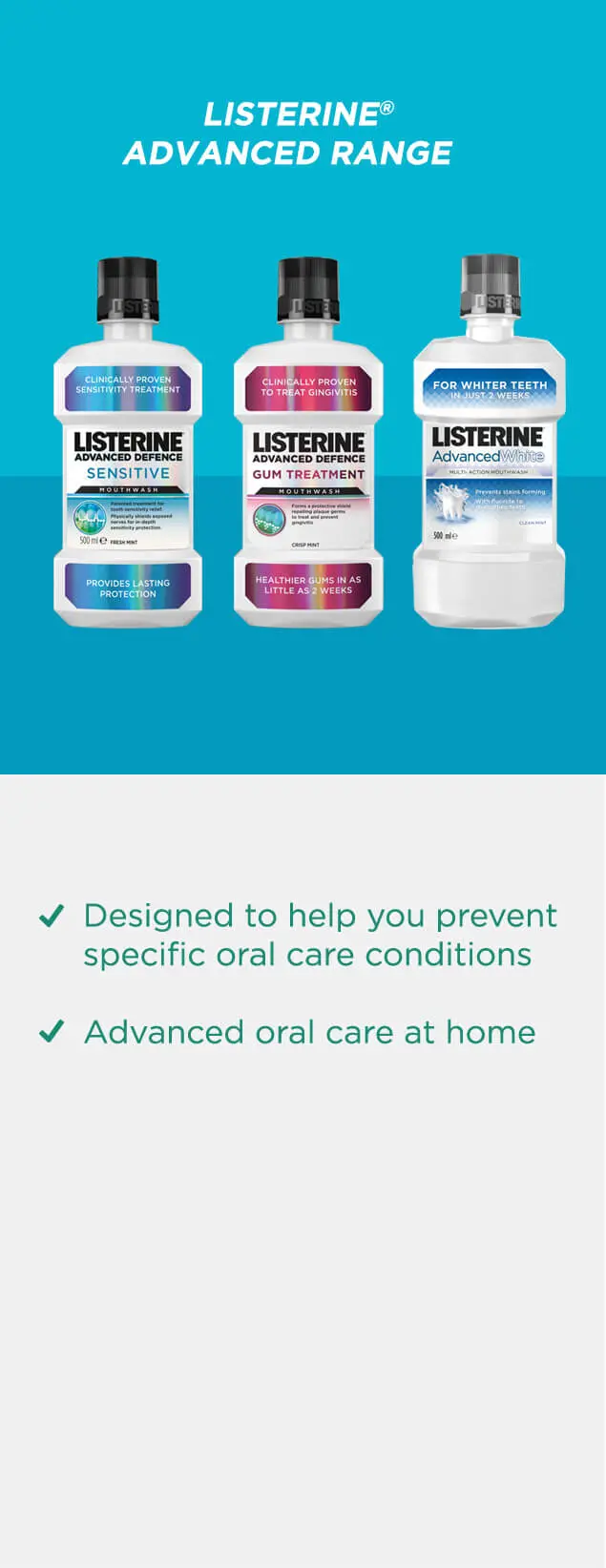 *not valid for non-alcohol variants, LISTERINE® Advanced White or LISTERINE® Advanced Defence